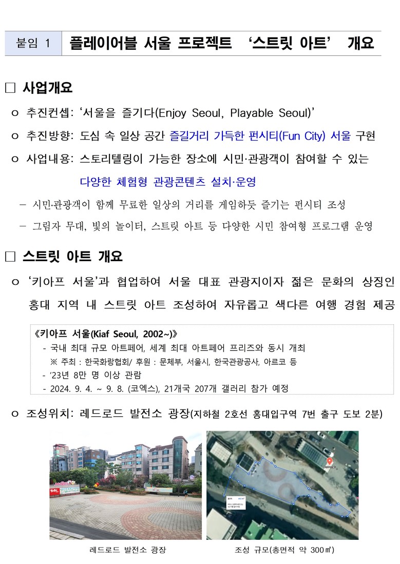 - 펀시티 프로젝트 <플레이어블 서울> 일환, 홍대 레드로드 발전소 광장 바닥 ‘스트릿 아트’ 신규 조성