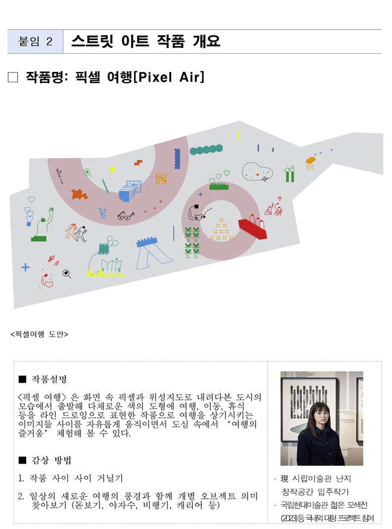 - 젊은 작가 ‘추미림’이 일상 속 여행의 즐거움을 표현한 ‘픽셀 여행(Pixel Air)’ 300㎡ 규모 작품